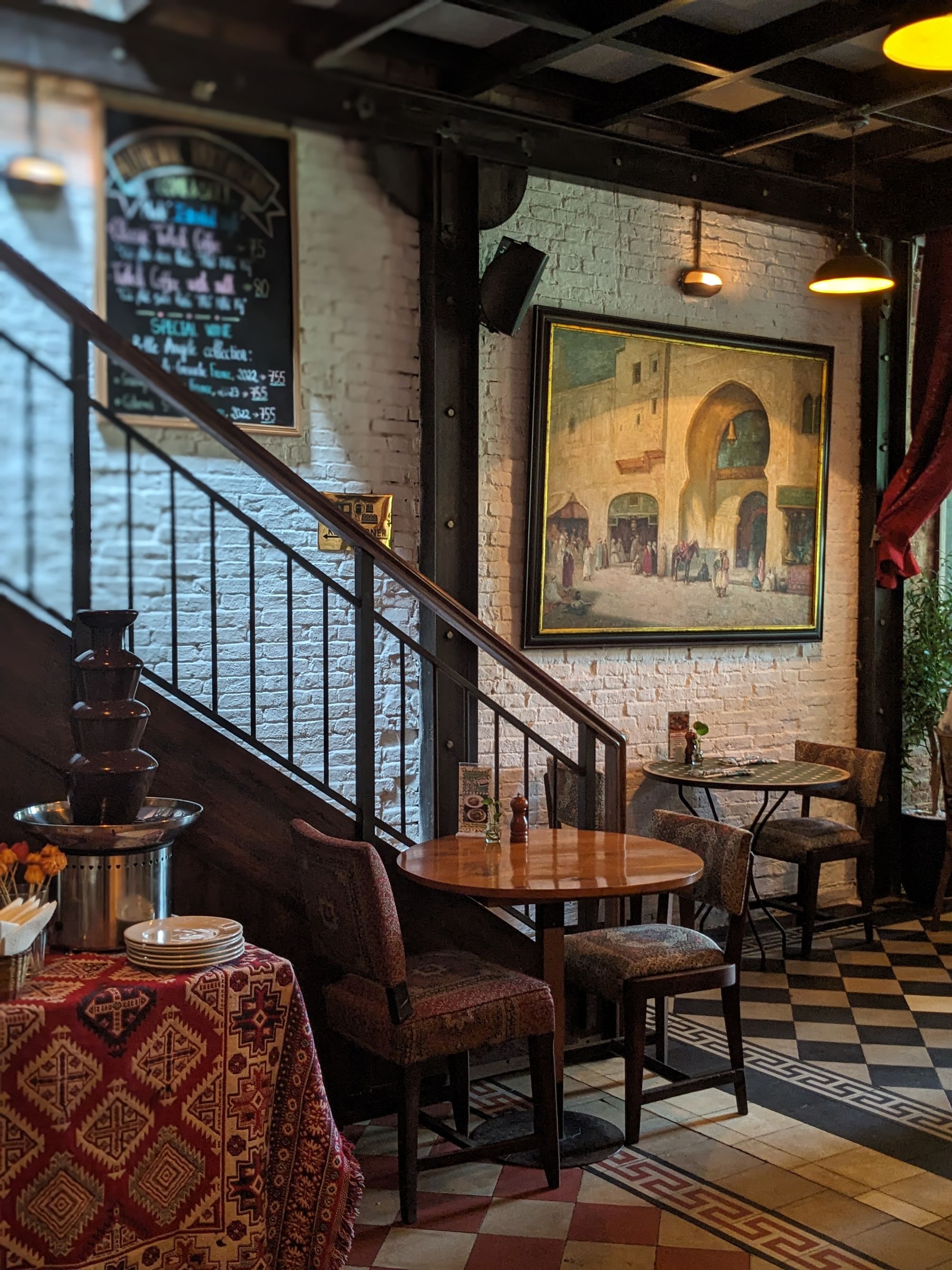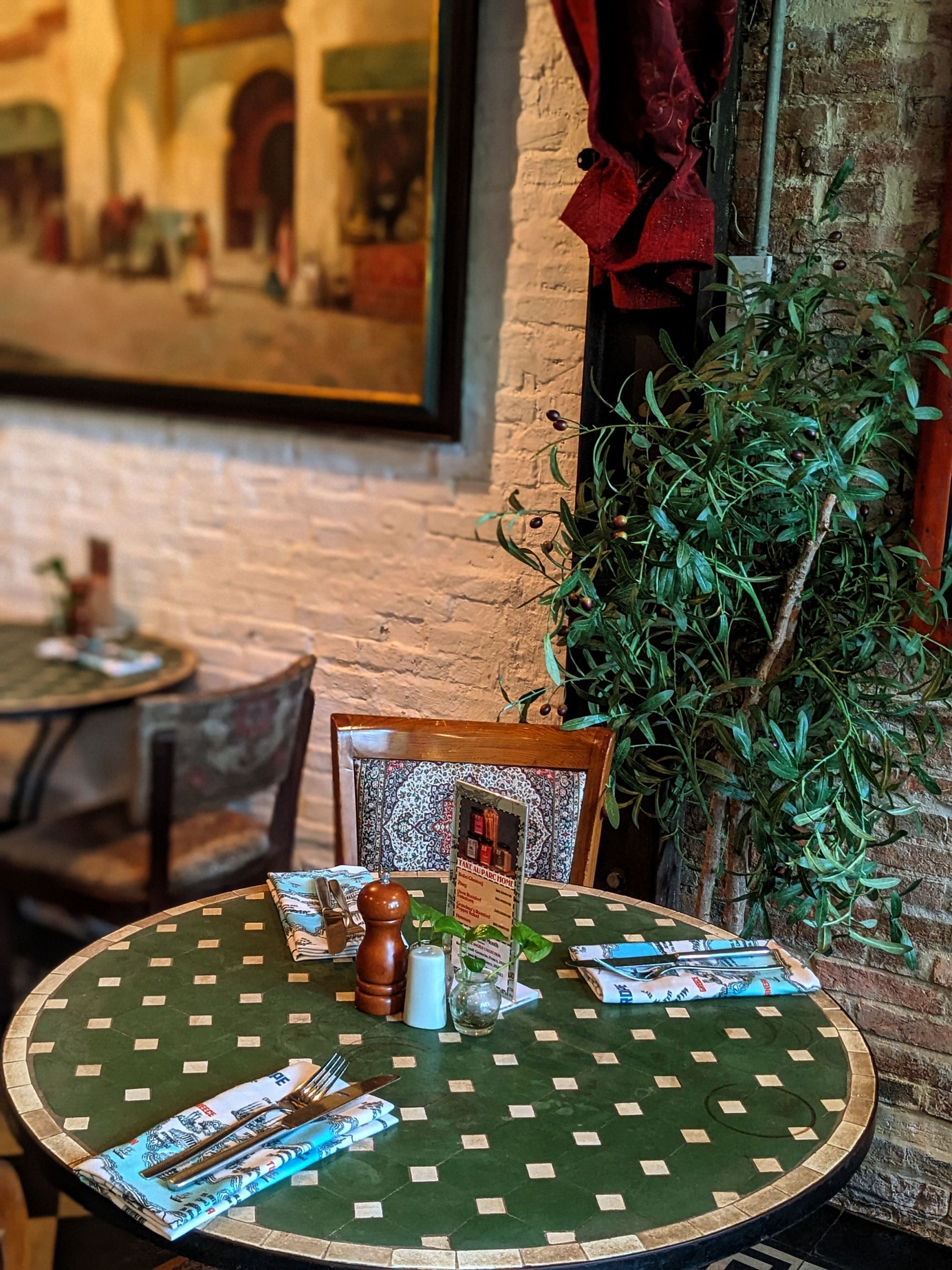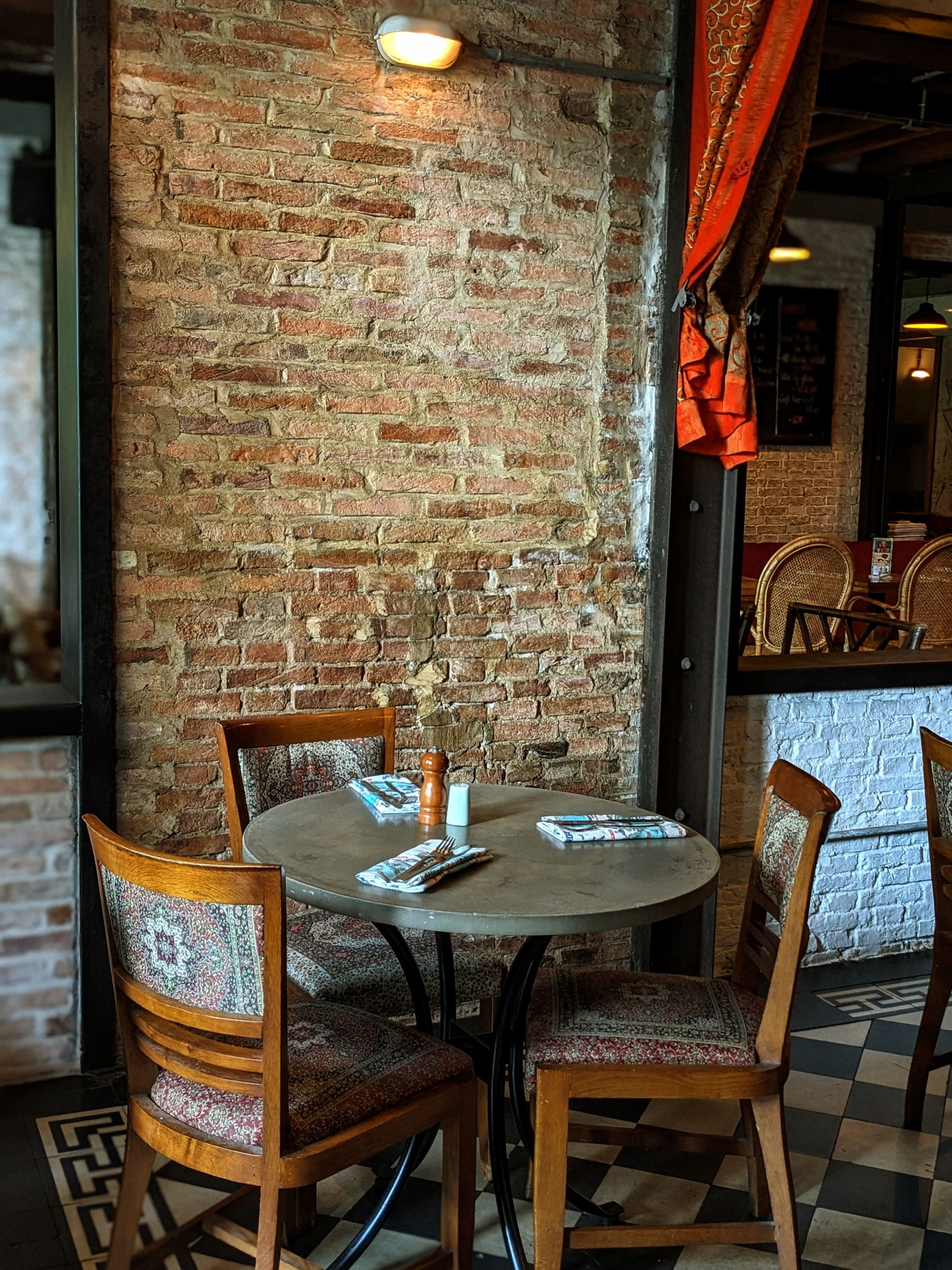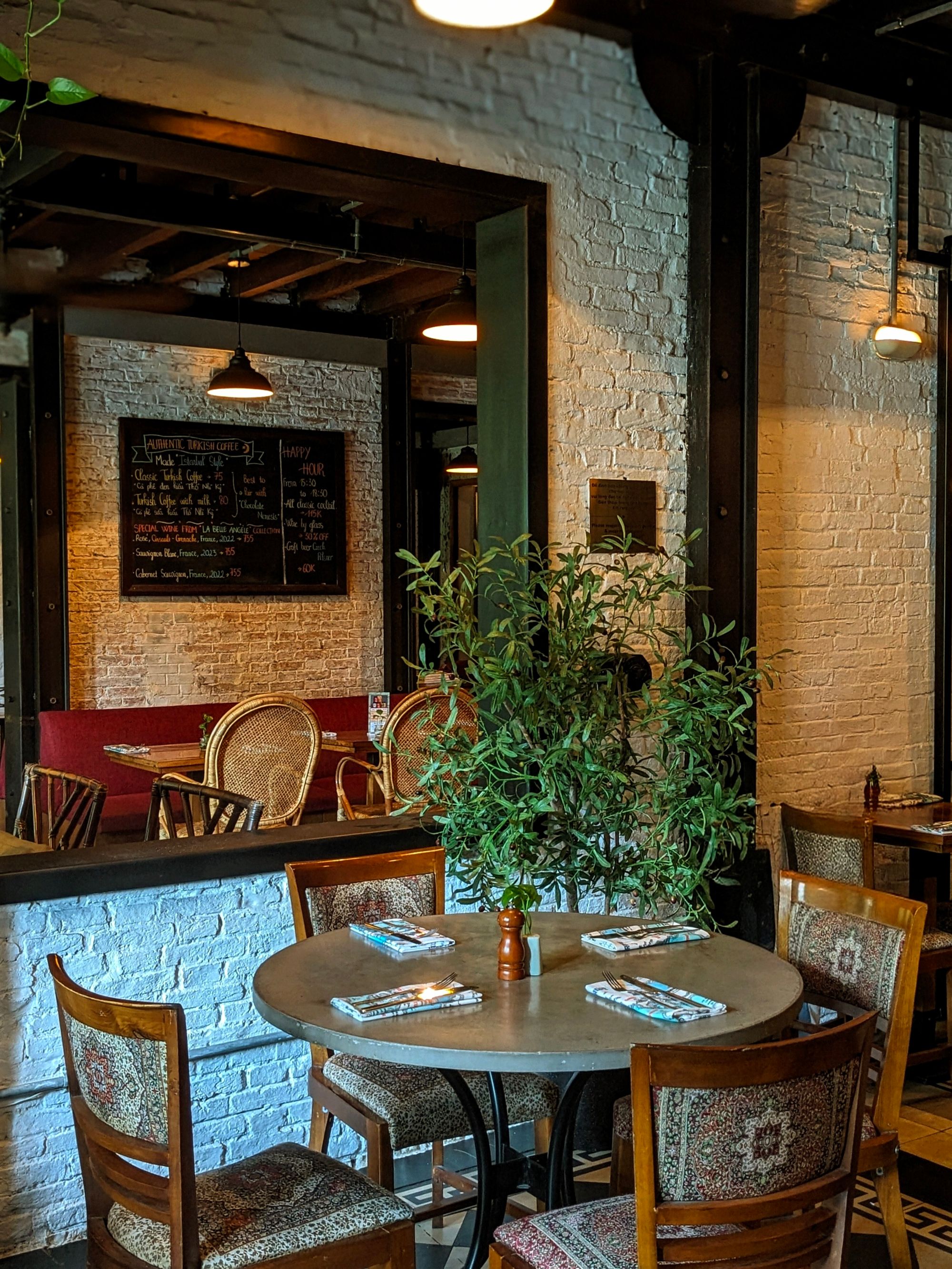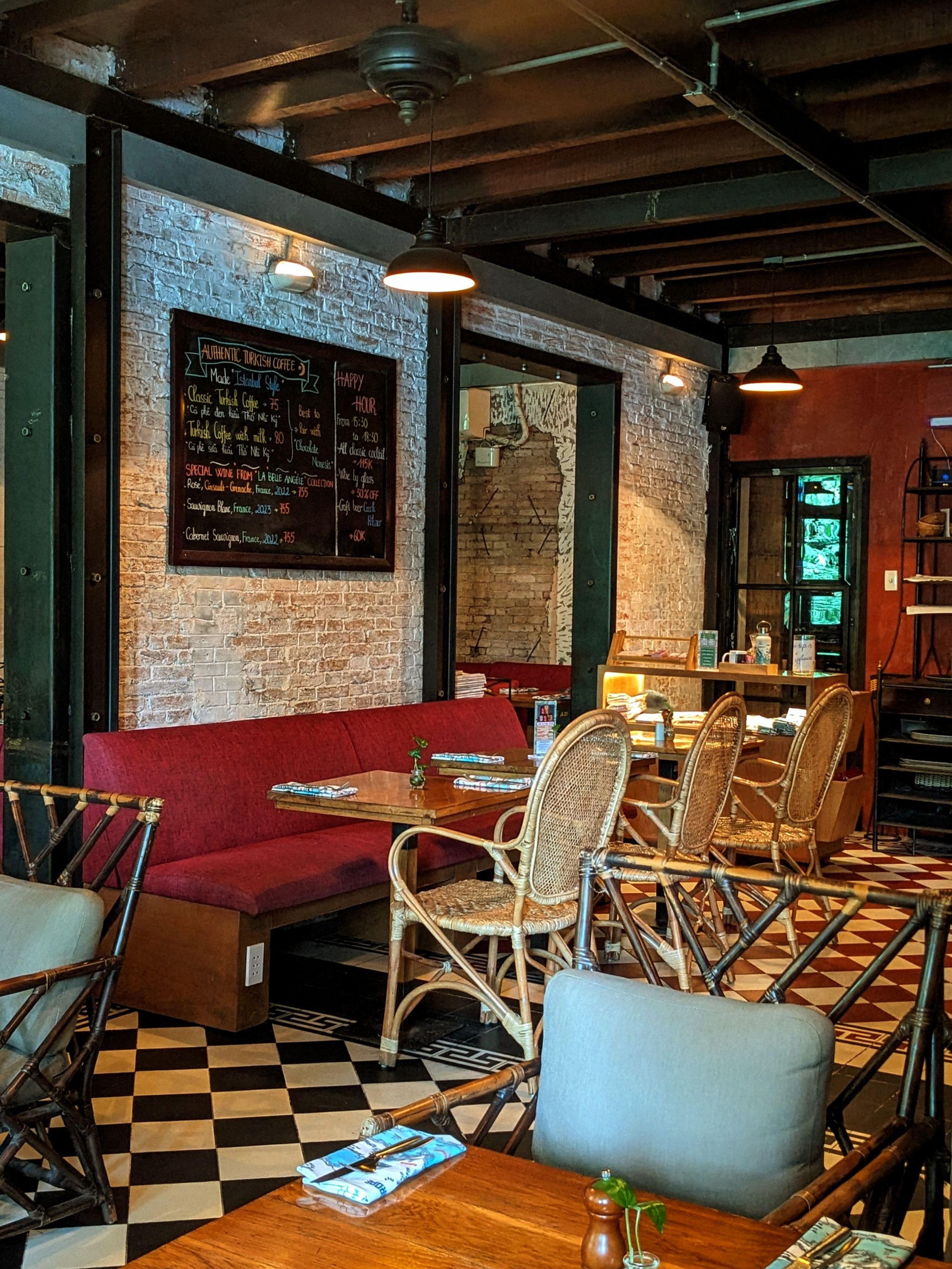 Nhà hàng nổi bật với không gian mang phong cách Địa Trung Hải, kết hợp giữa nét hiện đại; và cổ điển như những bức tường gạch thô, khung cửa vòm, gạch mosaic... Với tông màu trầm ấm của những bức tường gạch, kết hợp với ánh đèn vàng tạo nên một không gian ấm cúng và gần gũi. Thêm vào đó là những bộ bàn ghế có đệm và gối ôm êm ái, hay những góc xanh mát của cây cối, mỗi chi tiết đều được chăm chút nhằm mang lại cho bạn sự thoải mái và thư thái.