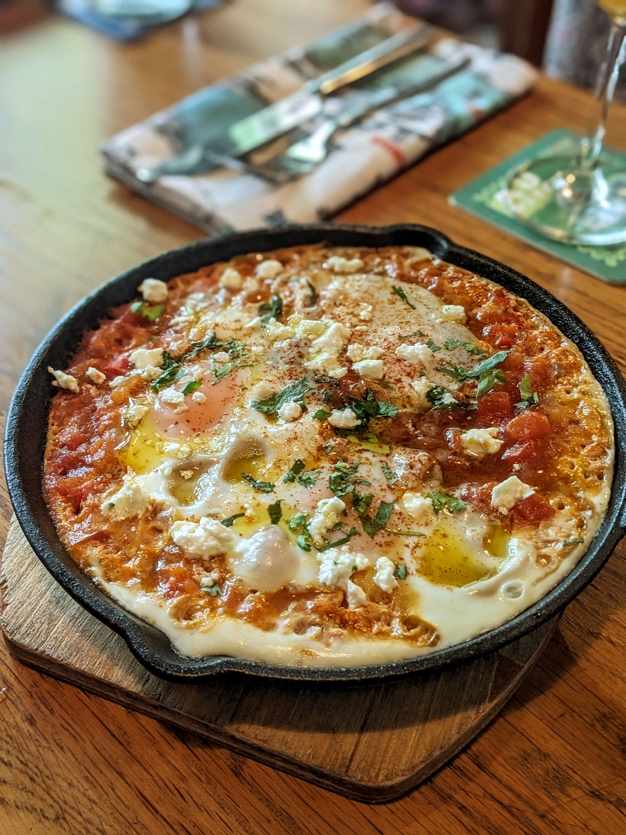 - Shakshouka, một đại diện đặc sắc của ẩm thực Địa Trung Hải, Shakshouka là sự hòa quyện giữa hương vị đậm đà và cảm giác dễ chịu, bổ dưỡng. Trứng được chần nhẹ trong sốt cà chua và ớt chuông nấu cùng gia vị thơm nồng, tạo nên một món ăn vừa ấm bụng, vừa rực rỡ với nguyên liệu giàu dinh dưỡng.