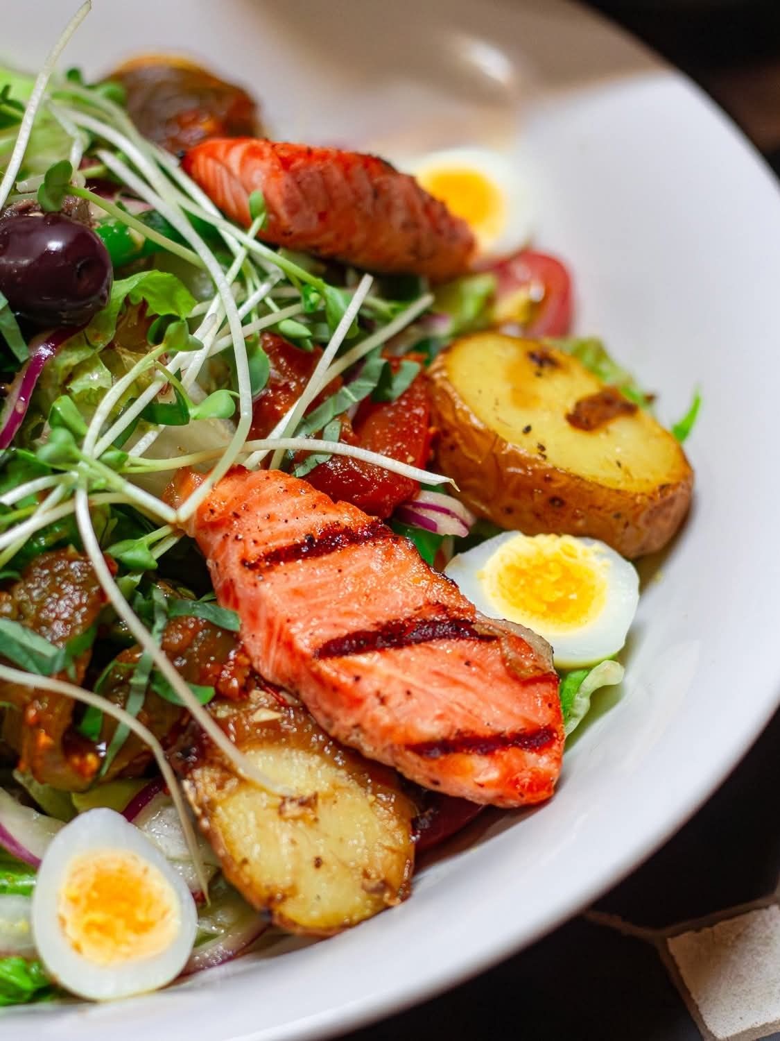 - Lấy cảm hứng từ Marseille, thành phố cảng đầy nắng của Pháp, Marseille Salad thấm đẫm tinh thần của miền Địa Trung Hải với gà xào sốt pesto thơm lừng, phô mai Parmesan bào mỏng, trứng lòng đào béo ngậy, cùng nước sốt Caesar kem mịn hòa quyện tạo nên một hương vị đậm đà mà nhẹ nhàng tươi mới.
