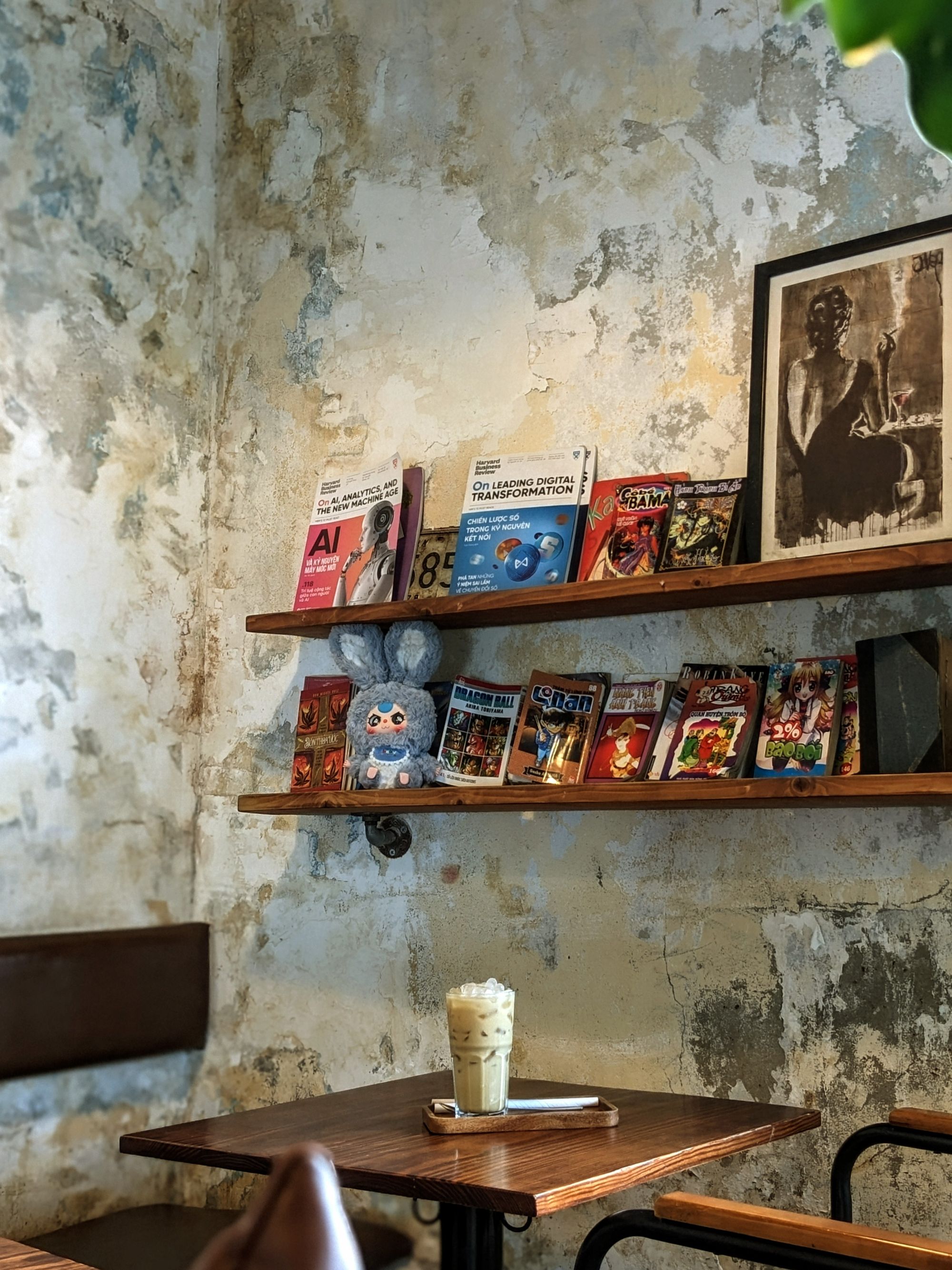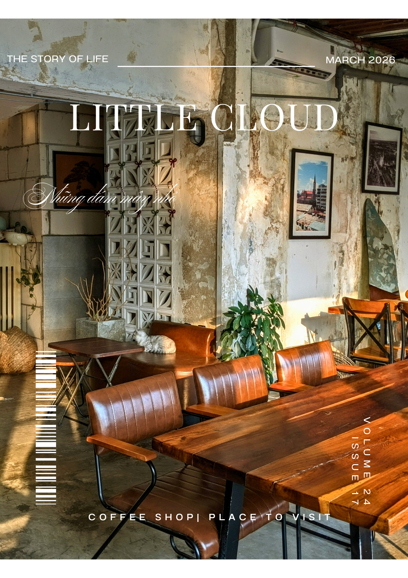 Bước vào Little Cloud, cảm giác đầu tiên là một không gian cổ điển nhưng không cũ kỹ, nơi mà từng vết tường bong tróc, từng thanh gỗ nâu trầm đều như kể một câu chuyện riêng. Ánh sáng dịu nhẹ xuyên qua khung cửa to, cân bằng nét ấm cúng với hơi thở hoài cổ đầy thư thái. Đây không chỉ là quán cà phê, mà là một góc tĩnh lặng để tâm hồn thả trôi.
