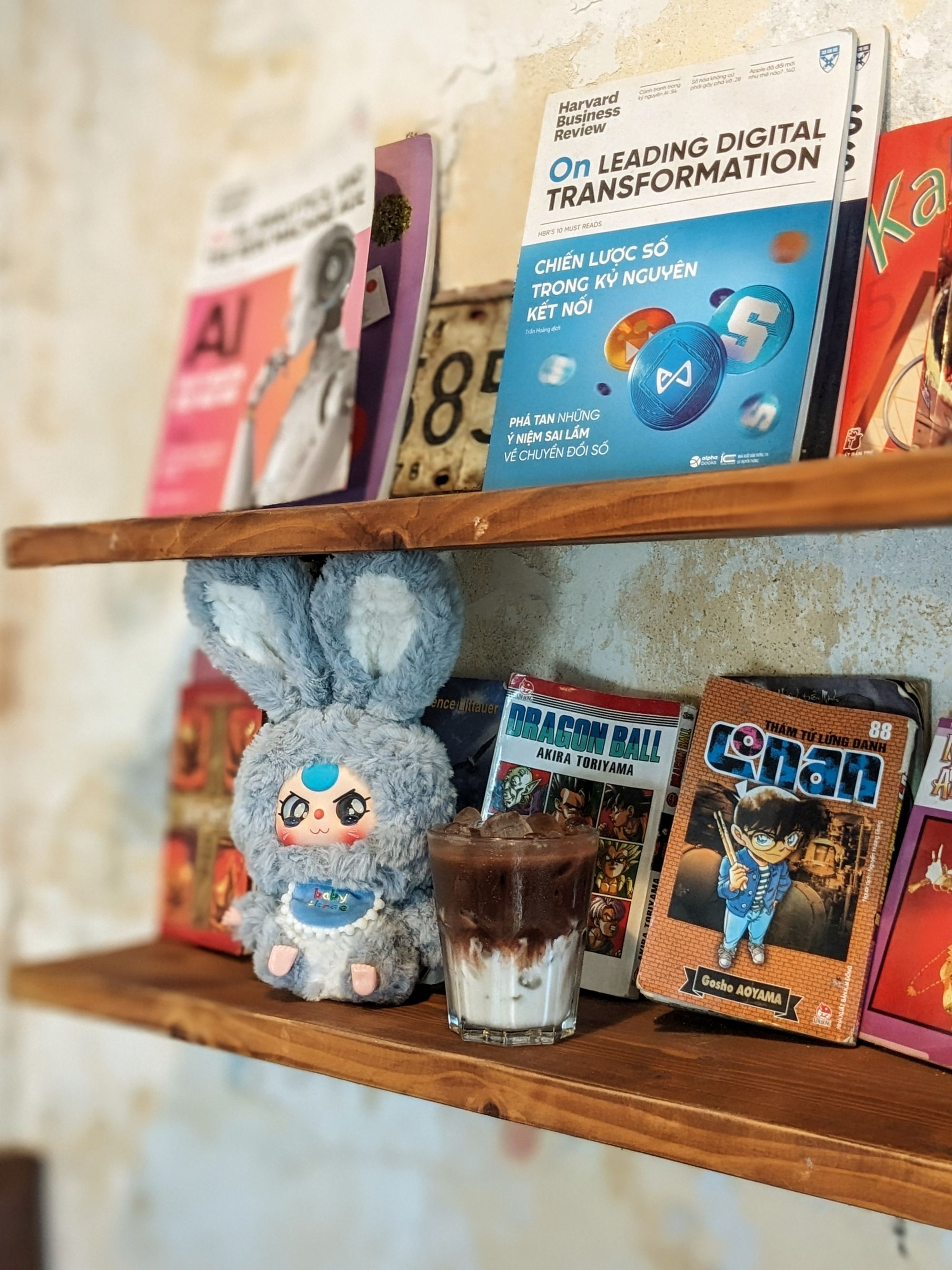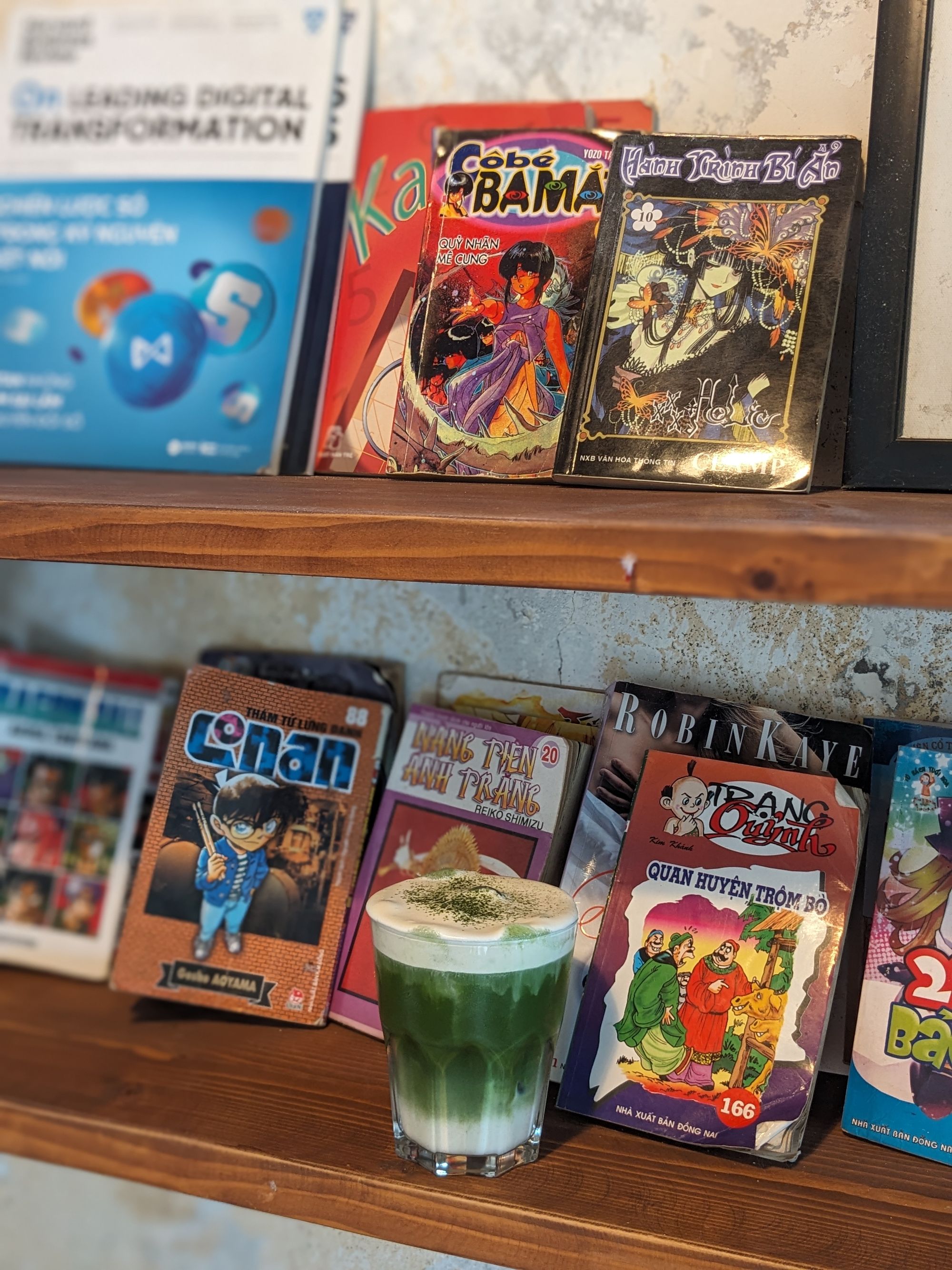 Bước vào quán, bạn sẽ lập tức cảm nhận được sự khác biệt: ánh sáng dịu mắt, nhạc nền êm ái, không gian yên tĩnh tách biệt khỏi ồn ào phố xá. Bàn ghế gỗ ấm cúng cùng các góc riêng tạo nên nơi lý tưởng để đọc sách, làm việc hay đơn giản là thư giãn, thả mình vào những phút giây bình yên.