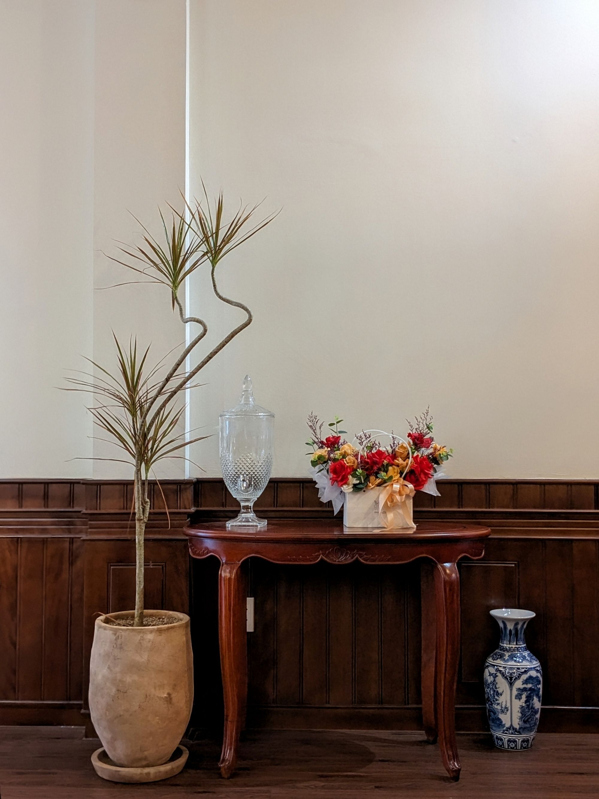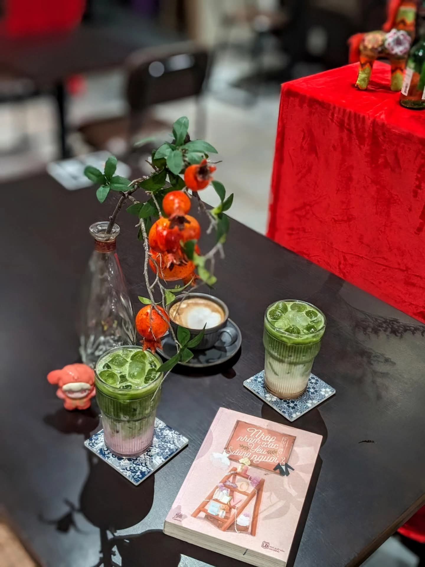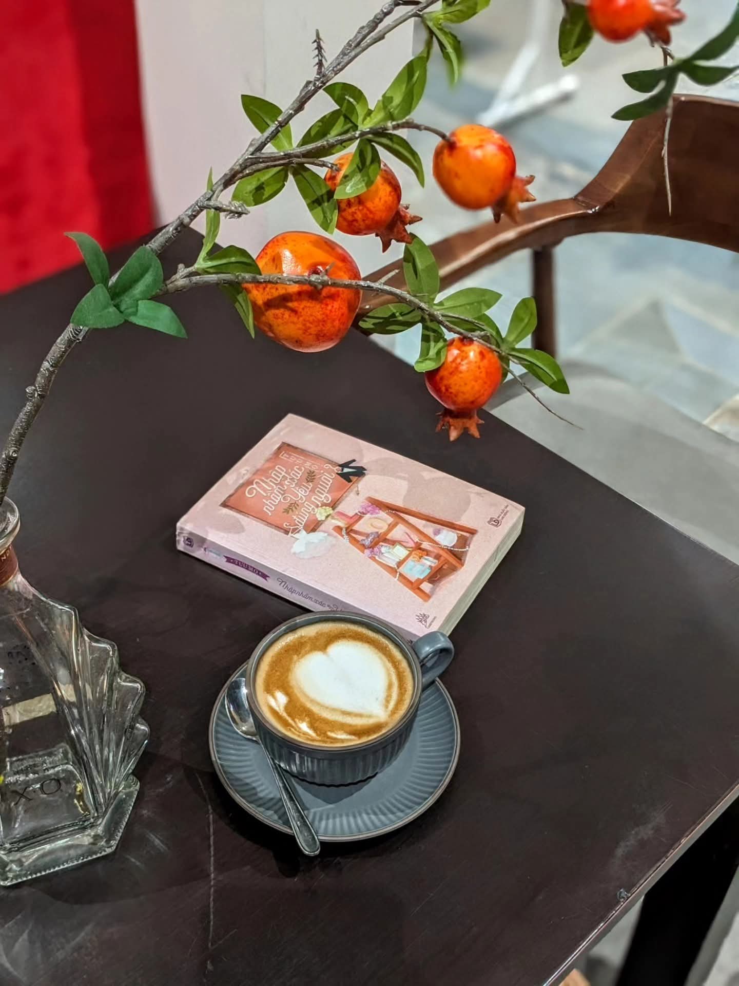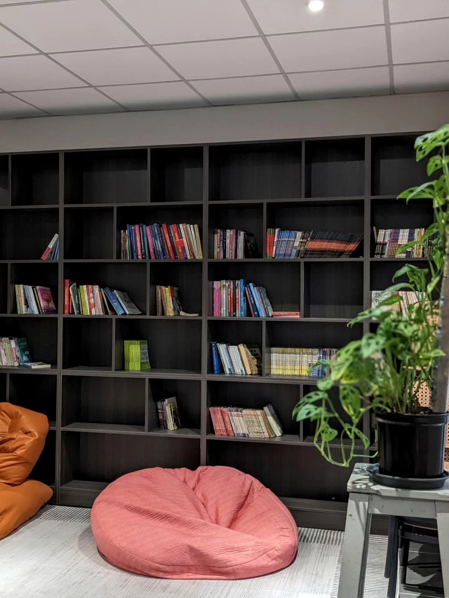 Lầu trên được thiết kế phục vụ workshop hoặc họp nhóm nhỏ, tối đa khoảng 35 người, vừa đảm bảo sự riêng tư vừa tiện nghi. Những chi tiết trang trí tinh tế – lọ hoa nhỏ, nhánh lựu đỏ hay những món đồ xinh xắn trên kệ sách – góp phần tạo nên một “góc mini retreat” giữa lòng thành phố.
