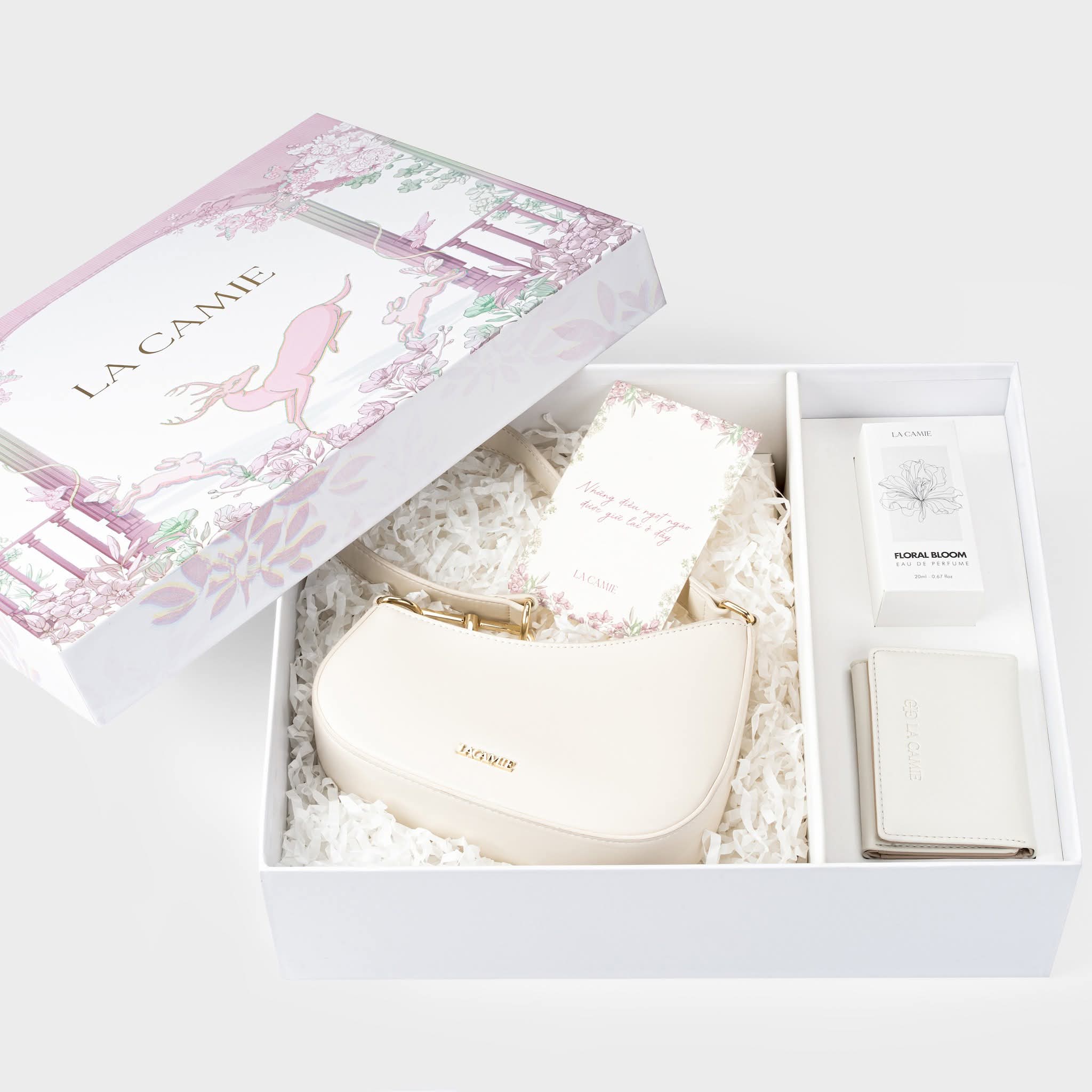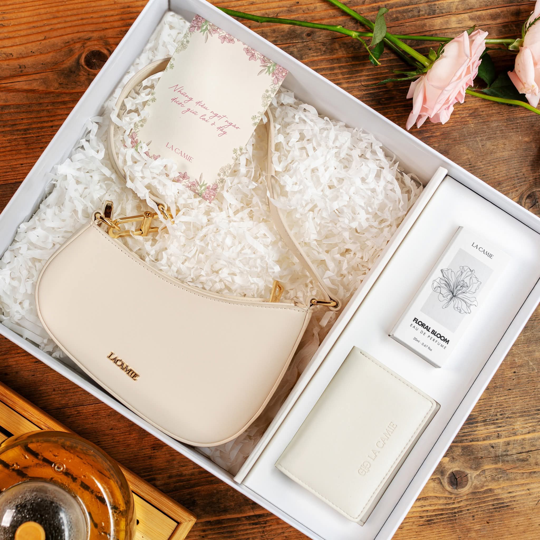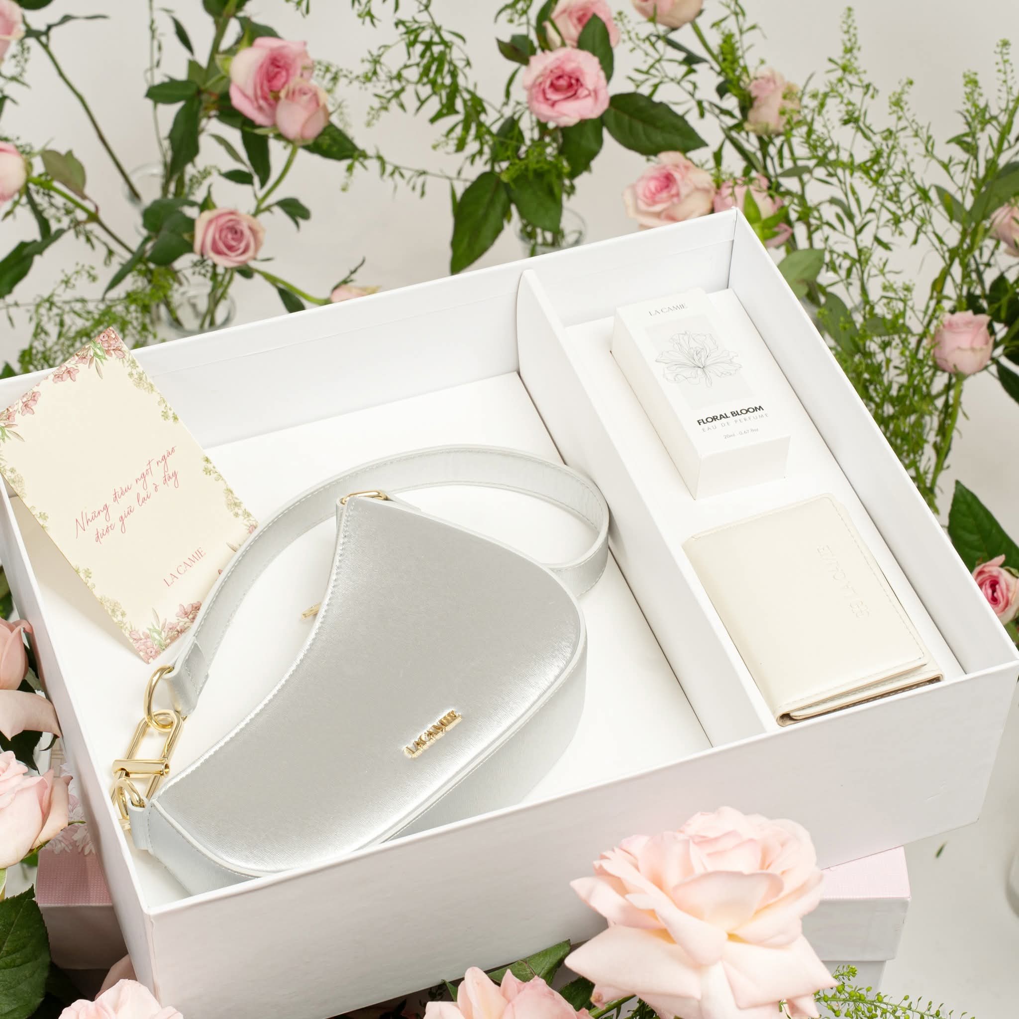 - Đúng Cách: Yêu đúng cách không phải là phô trương, mà là sự trân trọng và quan tâm đúng lúc, đúng người. Mỗi hộp quà Đúng Cách gồm: Túi xách Bucket mềm mại, gam màu thời thượng – mang lại vẻ thanh lịch, trẻ trung và tinh tế. Nước hoa Floral Bloom với hương thơm tự nhiên, thu hút. Ví mini nhỏ gọn, tiện dụng hằng ngày. Hộp quà chính là lời nhắc dịu dàng cho tình yêu giản đơn mà chân thành.
