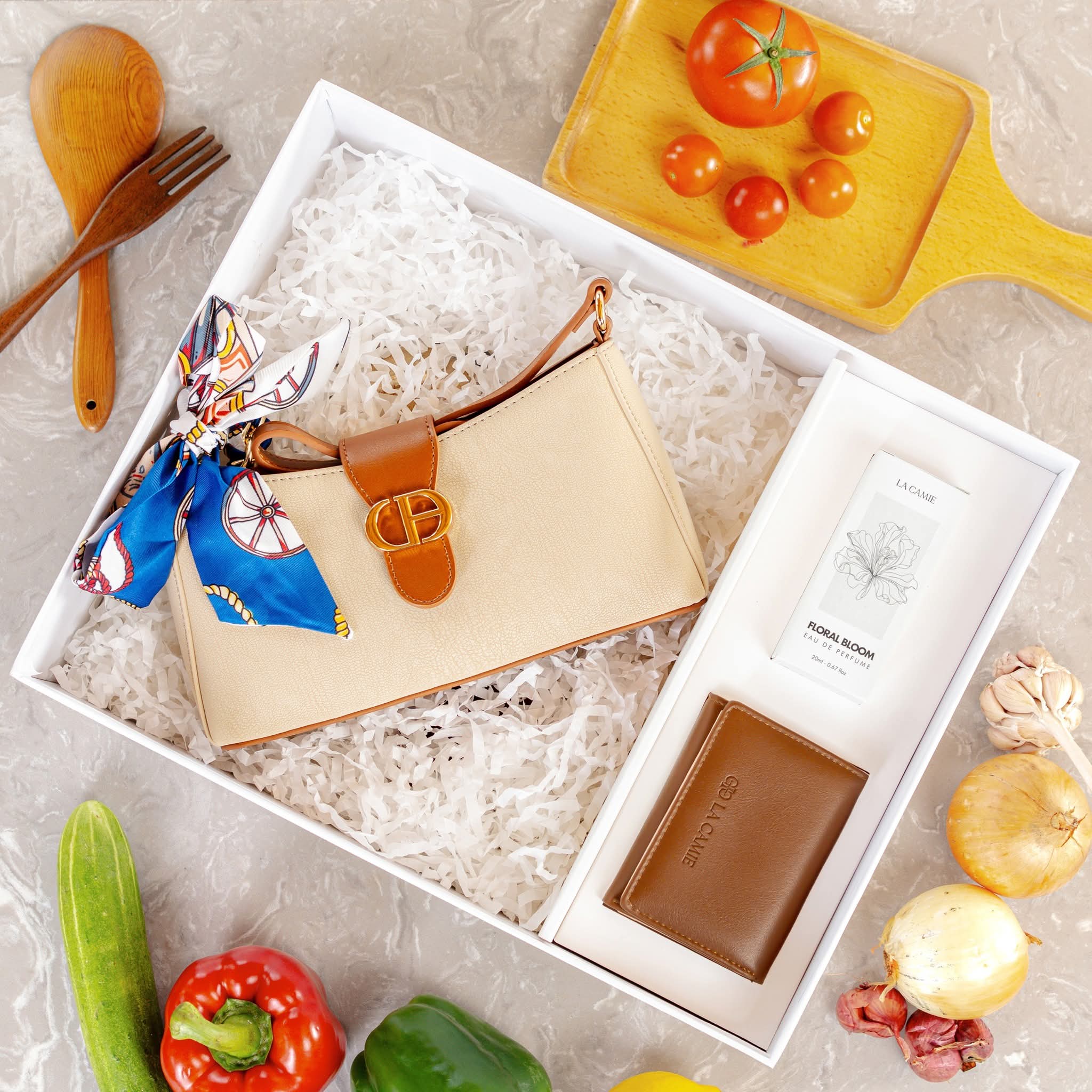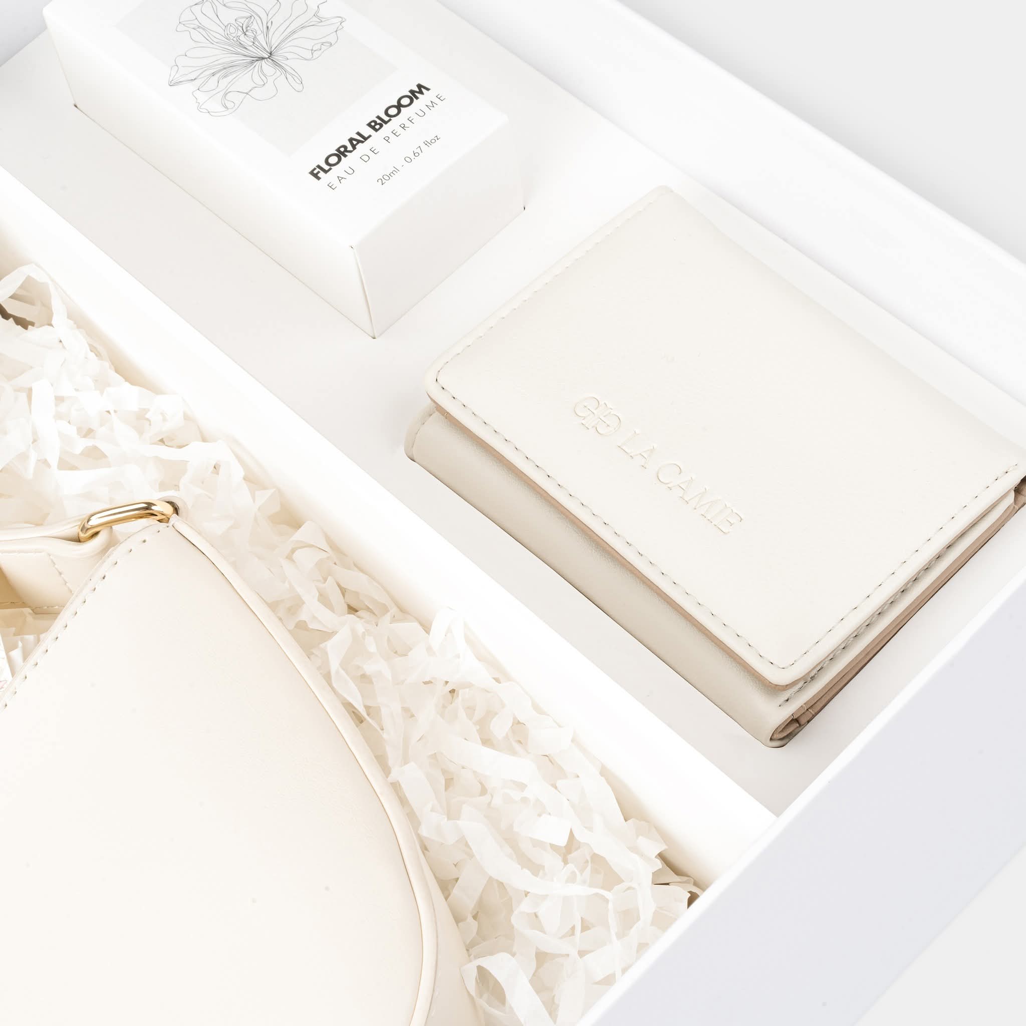 - Đúng Lời: Có những lời yêu thương đôi khi khó nói thành câu, nhưng có thể gửi trao qua một món quà đúng. Hộp quà này gồm túi xách Vellichor sang trọng thời thượng, nước hoa Floral Bloom tinh tế và ví mini thanh lịch.