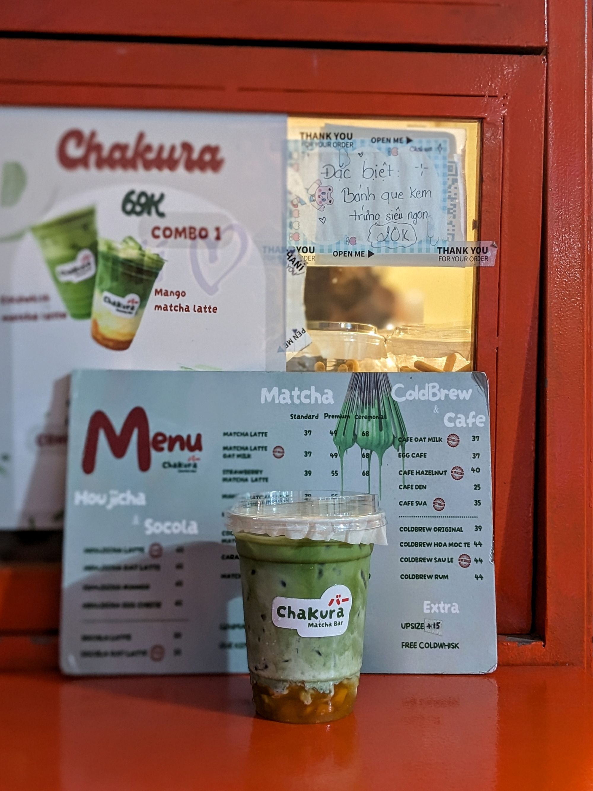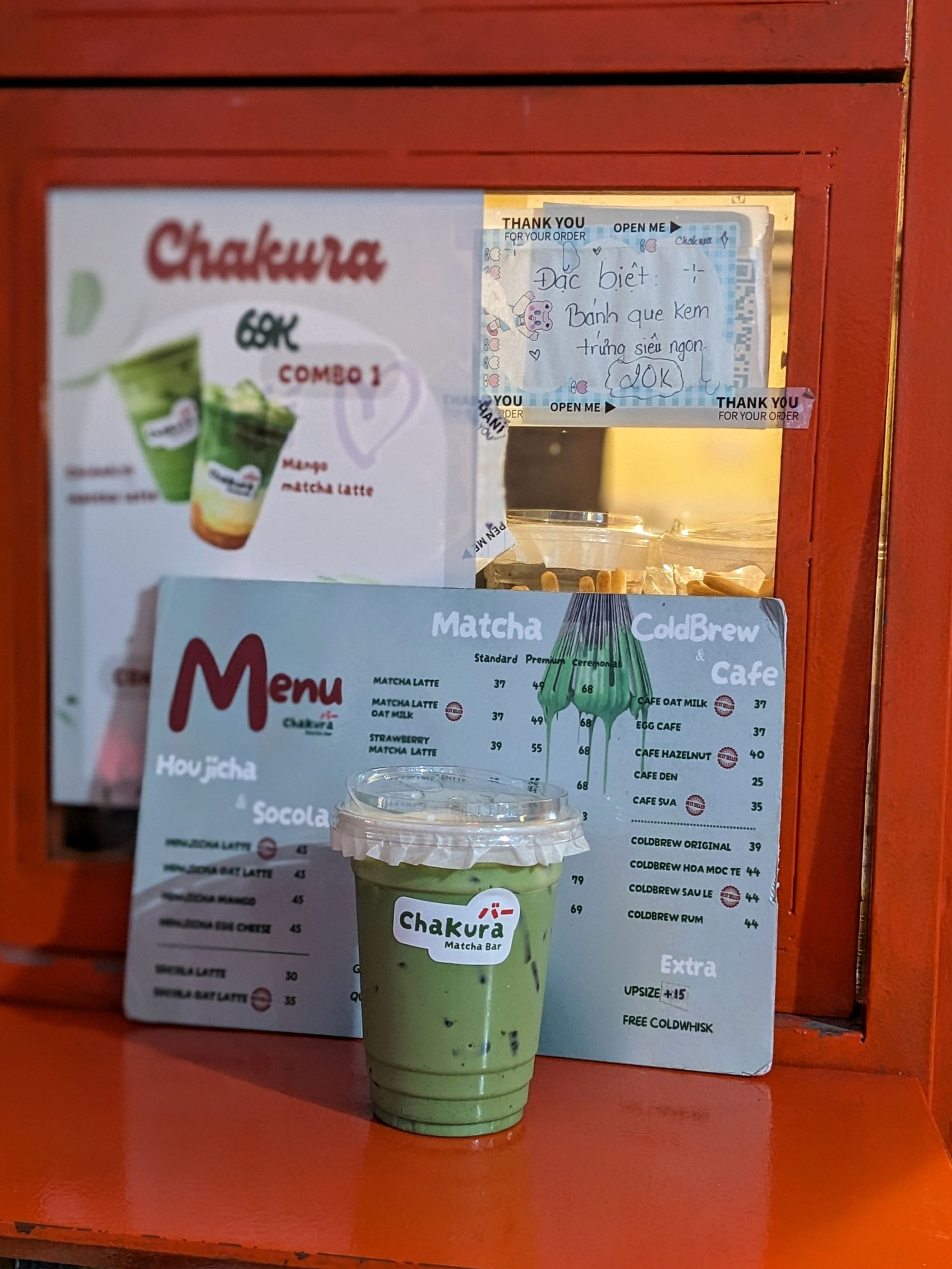 Chakura Matcha Bar mang đến trải nghiệm giản dị, để dừng lại một chút giữa nhịp sống hối hả, thưởng thức hương vị và khoảnh khắc riêng tư, dù bạn chọn ngồi lại hay mang đi.