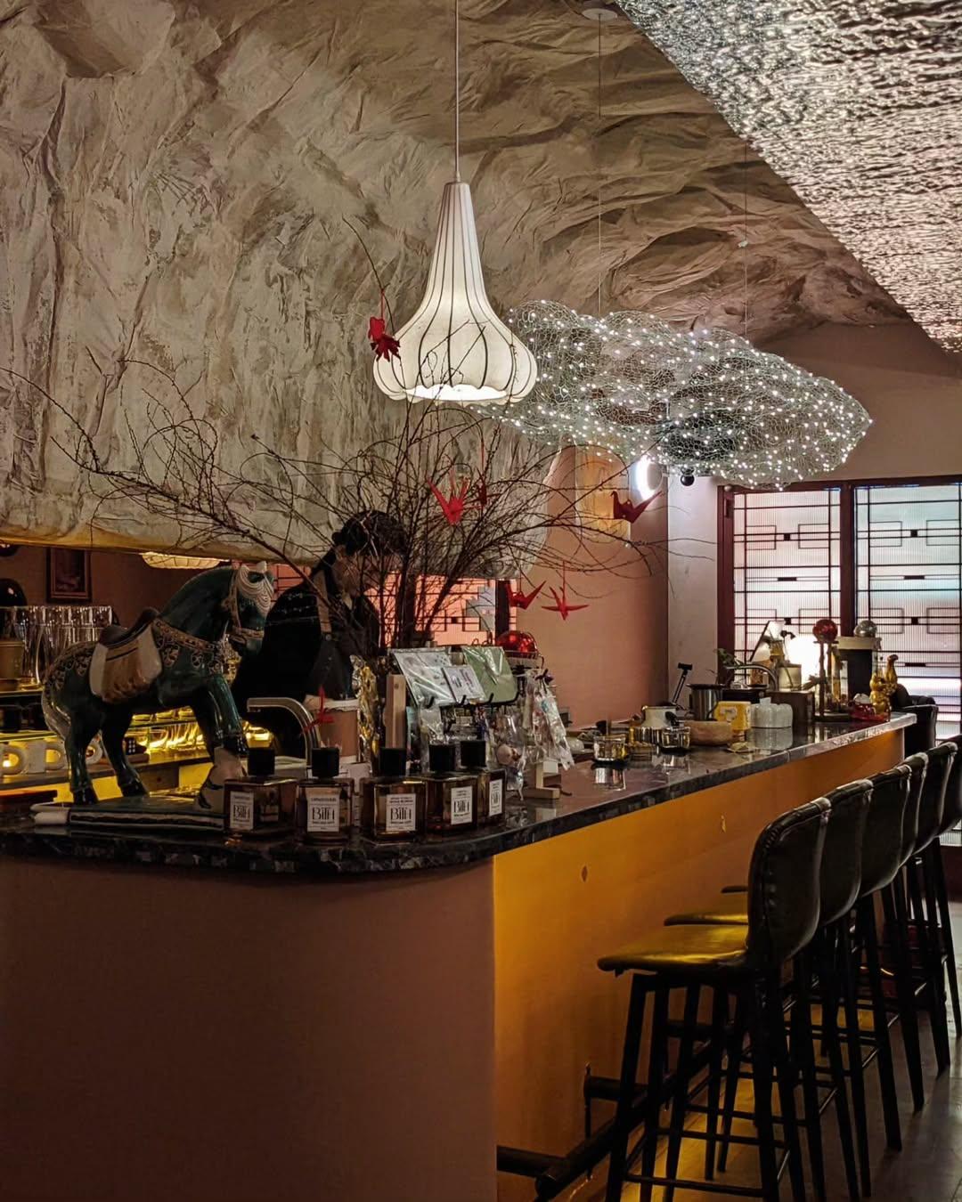 Between us, Lý Tự Trọng là một quán matcha mang phong cách hidden bar nằm ẩn mình trong một căn chung cư cũ giữa trung tâm Sài Gòn. Không gian quán gây ấn tượng với ánh đèn vàng ấm áp, thiết kế tối giản nhưng đầy chất nghệ thuật, tạo cảm giác yên tĩnh và riêng tư.
