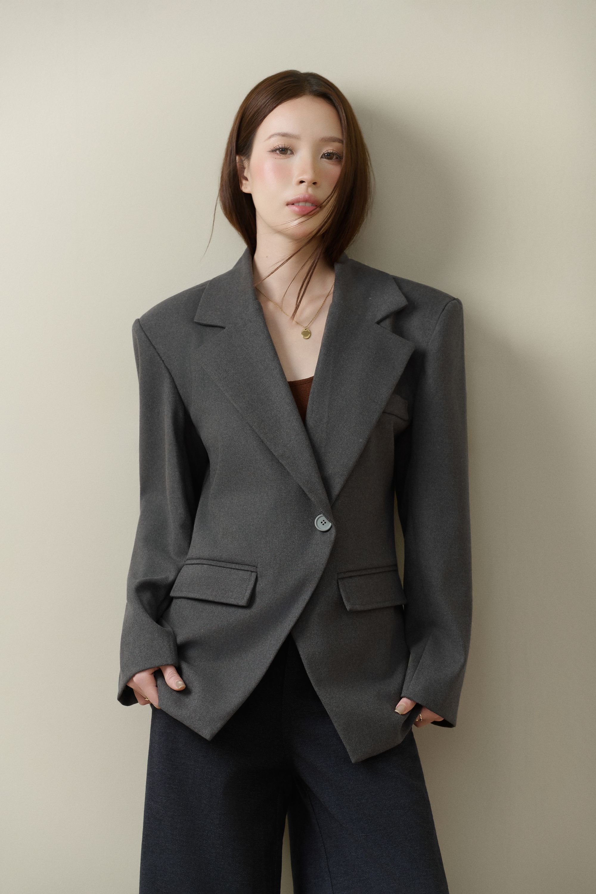 - Tro là giai đoạn mùa đông đã hiện rõ hơn trong không gian sống. Không còn sự mơ hồ của những ngày đầu, nhưng cũng chưa bước vào cái lạnh sâu. Mọi thứ lúc này mang sắc xám trầm, trung tính, đủ để tạo cảm giác lắng xuống mà không nặng nề. Đây là khoảng giữa của mùa đông, Tro là chiếc áo blazer được may 2 lớp có độn vai với chất liệu dạ ấm áp nhưng vẫn giữ form.