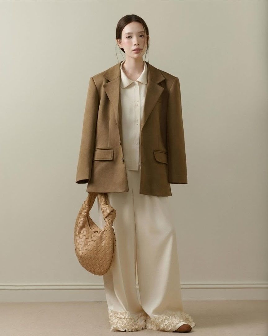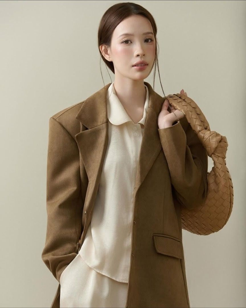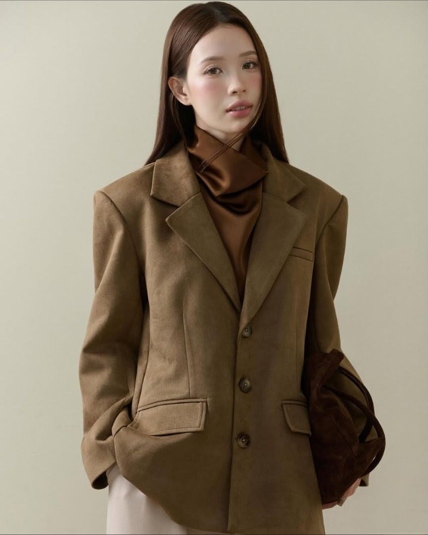 - Yên là khoảnh khắc mùa đông dịu xuống. Ở Yên, cảm giác an toàn không đến từ sự che chắn, mà đến từ sự tin tưởng. Tin rằng cái lạnh này không gây tổn thương. Đó là chiếc áo blazer da lộn dày dặn, với tông màu nâu ấm áp. Chỉ cần khoác nhẹ cũng đủ mang đến cảm giác an toàn. Một sự bình ổn nhẹ, kéo dài, như hơi ấm còn sót lại trên da vào cuối ngày đông.