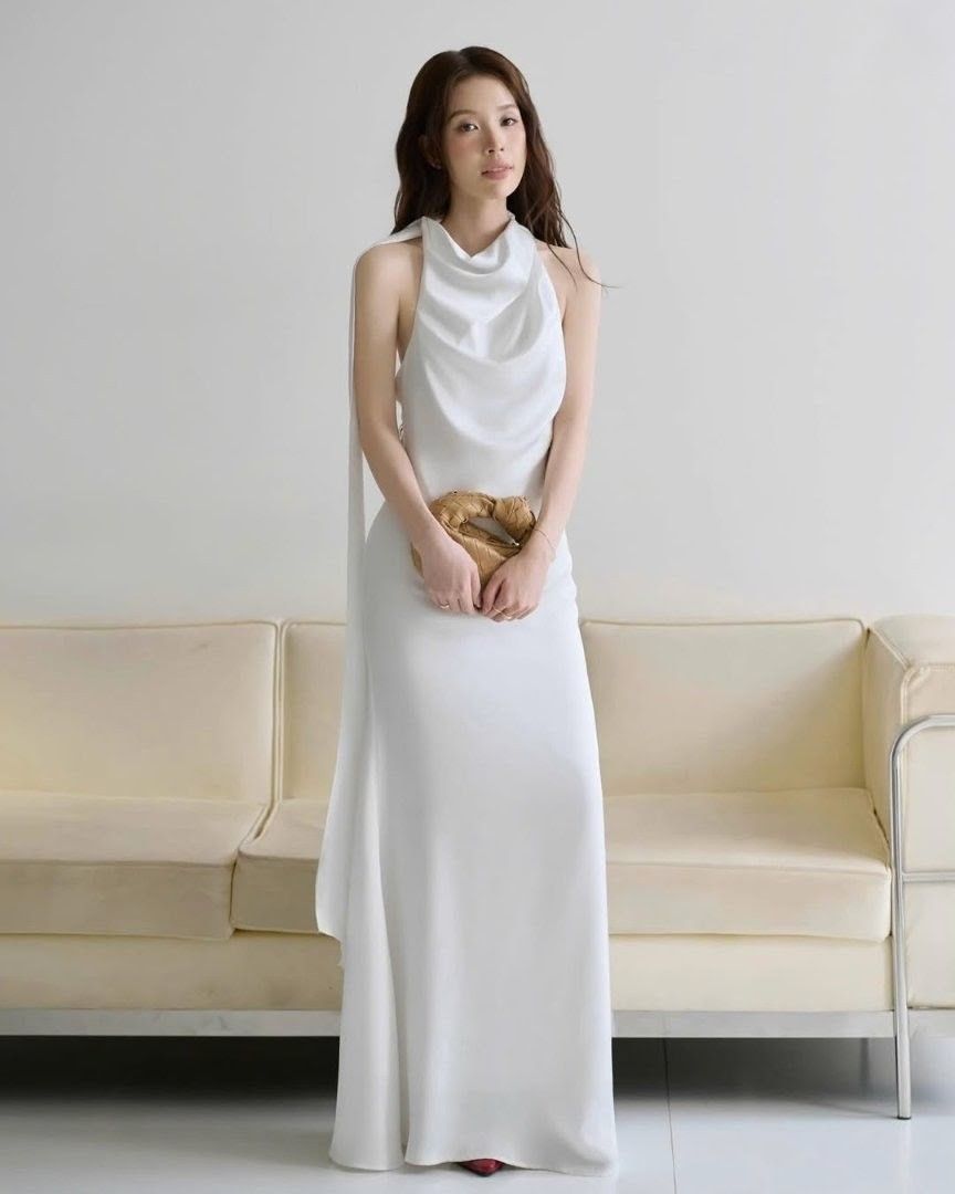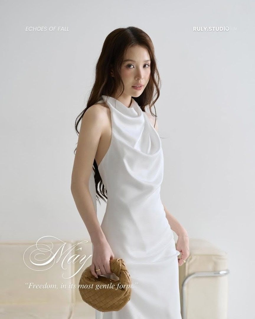 - Mây là chương đầu tiên của bản hòa ca ấy. Lấy cảm hứng từ khoảnh khắc khi ta ngẩng lên, thấy mây lững lờ trôi giữa nền trời trong vắt, chiếc váy lụa cổ yếm buông rơi nhẹ, kết hợp với áo choàng mỏng như một lời thì thầm về sự tự do và tĩnh lặng.