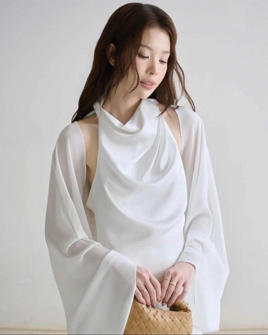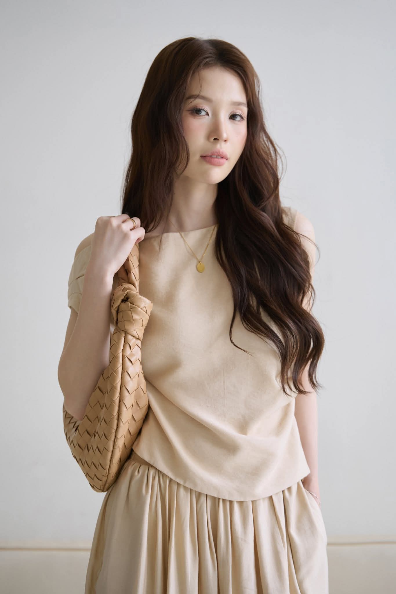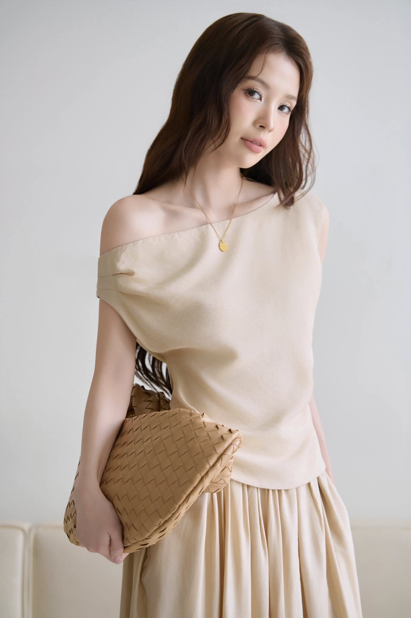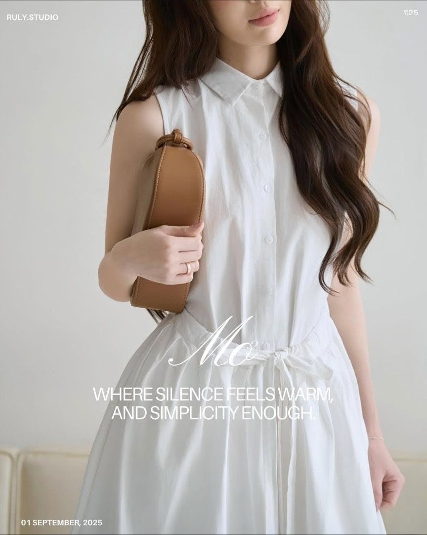 - Mộc vẻ đẹp trong những điều bình dị nhất; với chất đũi Nhật mềm rũ, từng nếp vải ôm nhẹ theo dáng người, tạo nên sự tự nhiên mà tinh tế. Phom áo lệch vai thả lòng, kết hợp cùng chân váy dài xếp nhẹ, là sự dung hòa giữa hiện đại và giản dị.