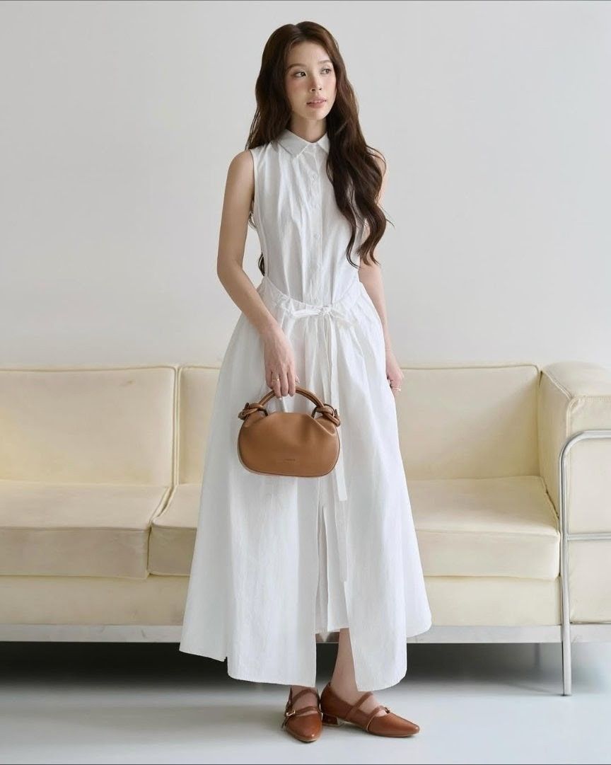 - Mơ là khoảnh khắc, khi ánh sáng sớm mai len qua cửa, phủ lên vạt váy trắng một lớp mờ ấm áp. Lấy cảm hứng từ những ngày thu chạm ngõ dịu dàng và an yên như một giấc mơ, chiếc váy dáng dài cổ sơ mi với chất liệu kaki cotton dày giữ form mà vẫn mềm mại trong từng chuyển động.