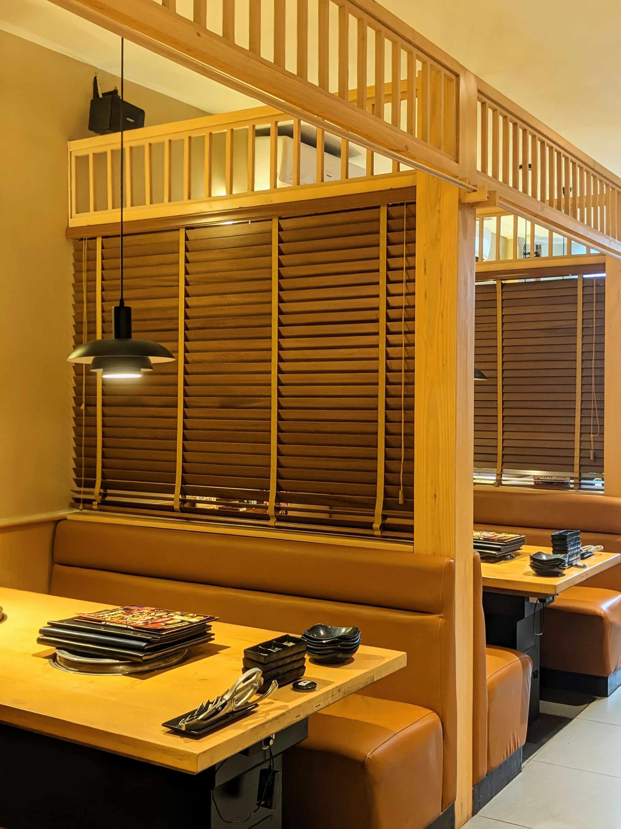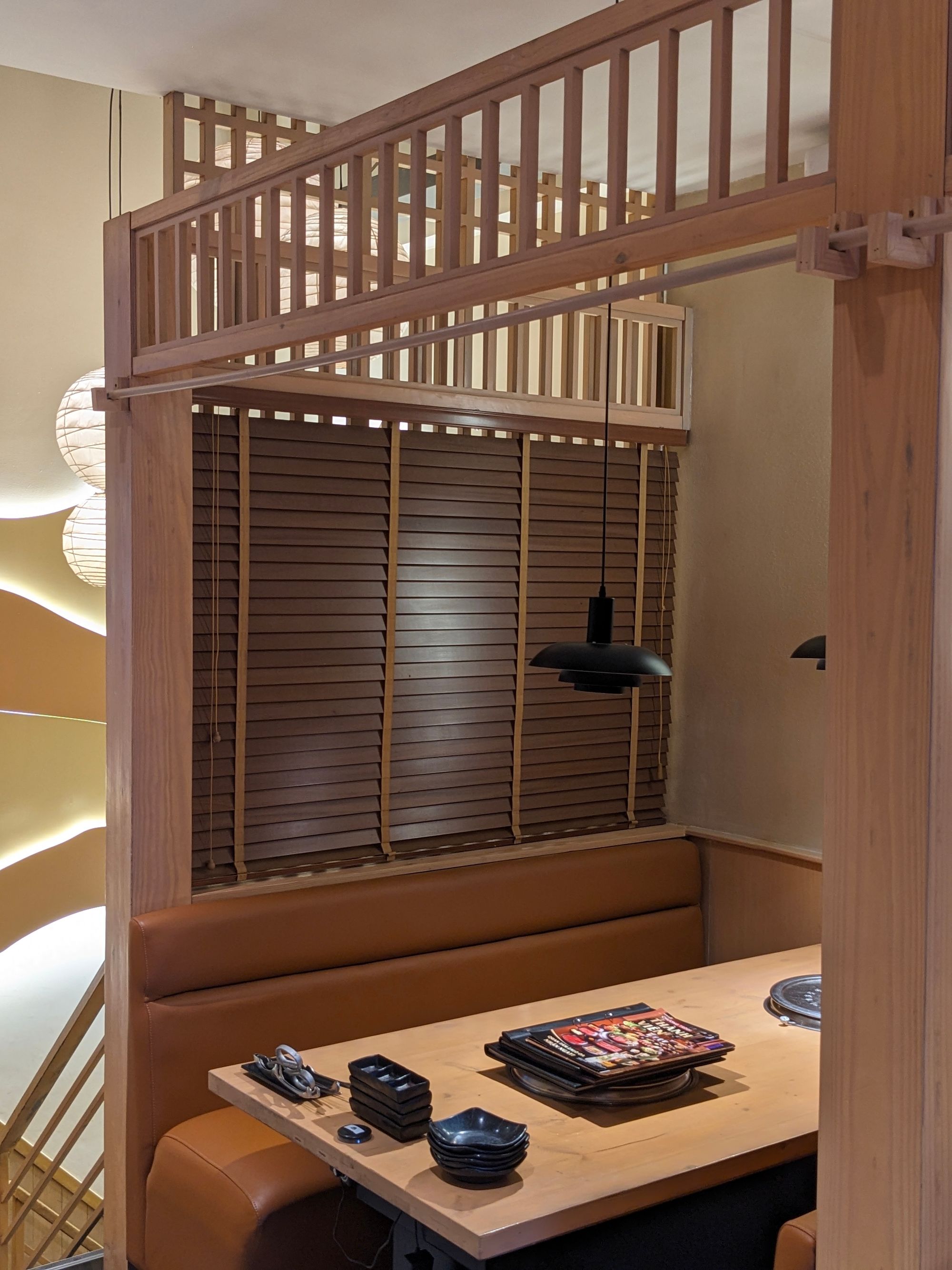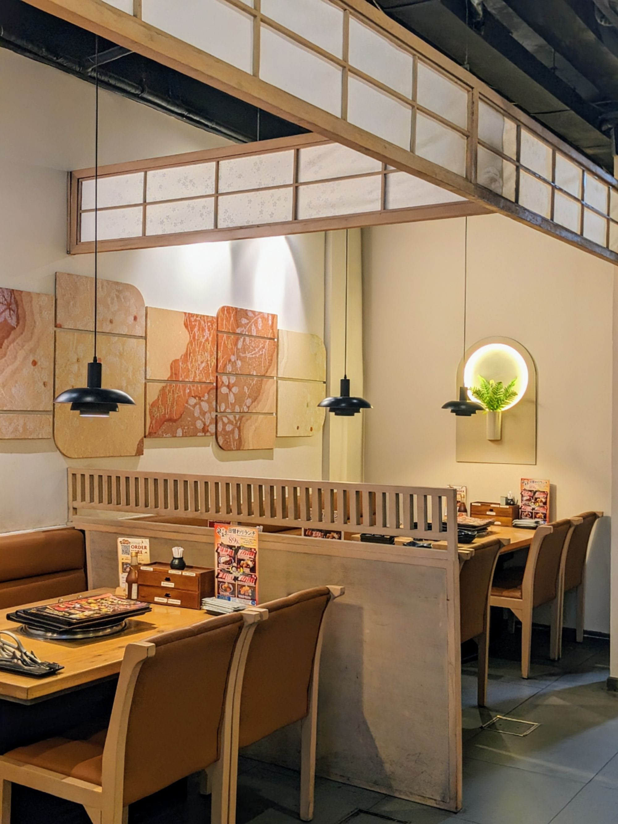 Không gian của Anrakutei Mạc Đĩnh Chi gồm 2 tầng, kết hợp giữa nét truyền thống và hiện đại, tối giản từ nội thất, bàn ghế đến vách ngăn bằng chất liệu gỗ tự nhiên. Nhà hàng được thiết kế theo phong cách nướng hiện đại nhưng vẫn giữ được nét truyền thống của văn hóa Nhật - nướng trên than củi truyền thống kết hợp với bếp không khói hiện đại tạo nên không gian ấm cúng. Bên cạnh các khu vực bàn chung, nhà hàng cũng có khu vực phòng riêng dành cho những thực khách không thích ồn ào, hay muốn có sự riêng tư thích hợp cho những buổi họp mặt gia đình, tụ tập bạn bè hay hẹn hò với những người thân yêu.